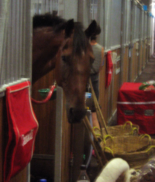 The horses seem to enjoy their new luxurious accommodation and settled in quickly. The Canadian Eventing Team have been preparing at a training camp in Florida so both the horses and riders are already well acclimatized to the hot & humid weather. Other horses arriving today include those from the Netherlands and Germany, including Anky herself who strolled by on Salinero. Although the barns have been pretty quiet these past couple of days things will be getting busy fast as more horses continue to arrive. Next Canadian horses due are the Dressage Team who are set to arrive July 30th. Very exciting!