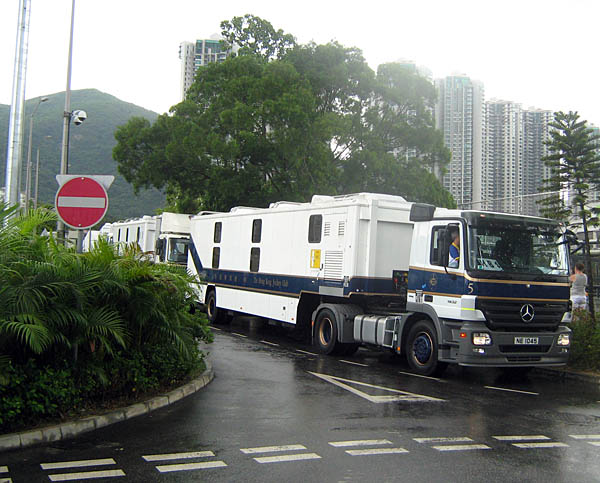 the super swanky air-conditioned rockstar horse vans from the Hong Kong Jockey Club