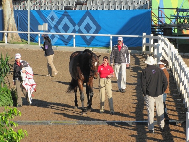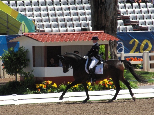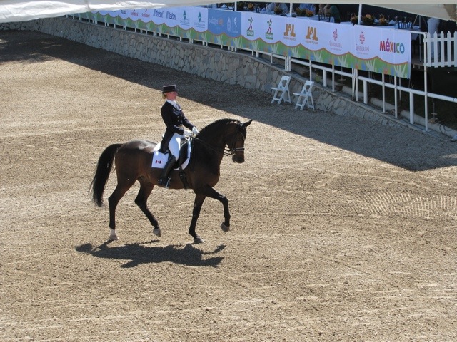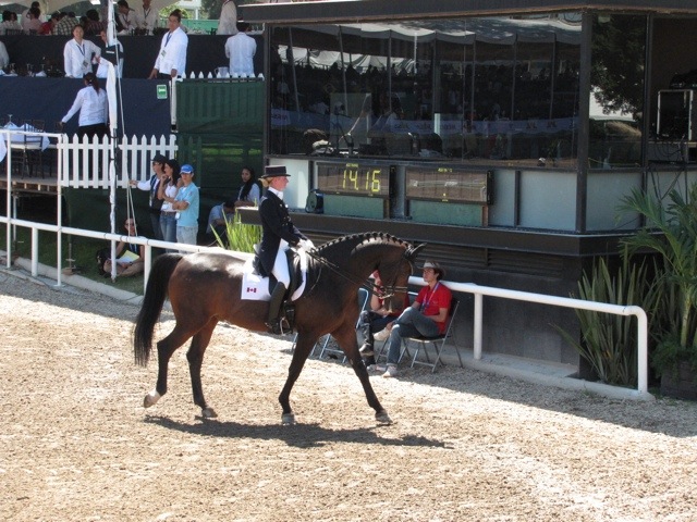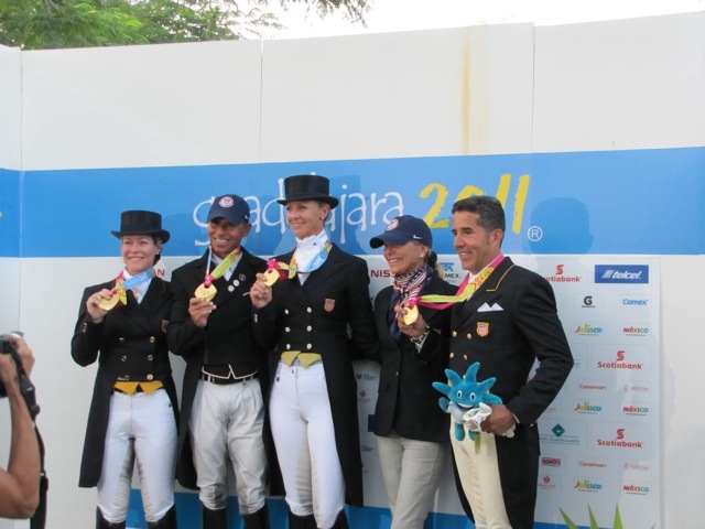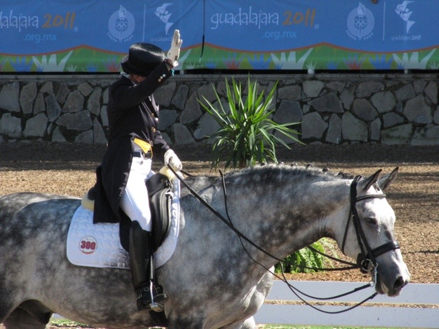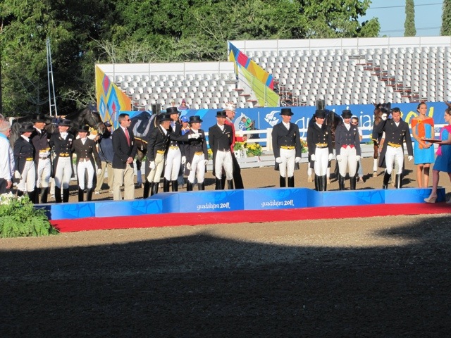 Dominican Republic’s Yvonne Losos de Muniz laid down an early challenge for the individual medals (which starts today), and there was an incredibly fancy horse from Columbia (name escapes me at the moment) whose gaits were so animated that it didn’t even look like his feet touch the ground. In the end, Columbia won Team Bronze and a team berth for 2012 Olympics (I think a first for that country!!).