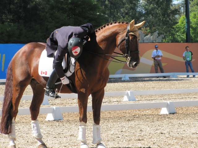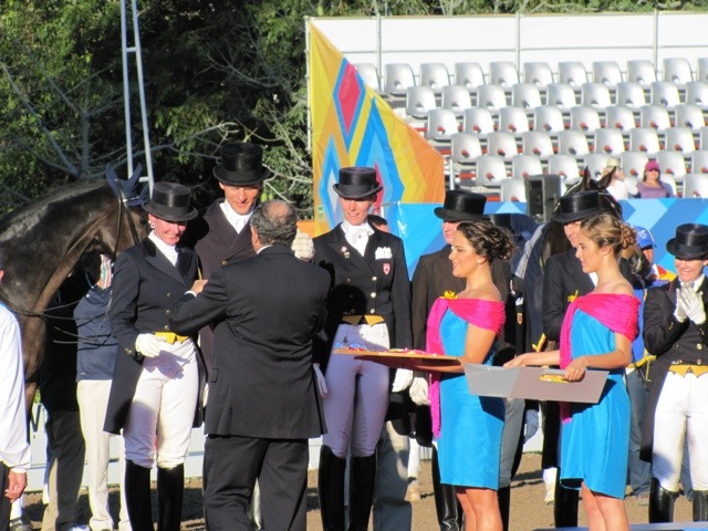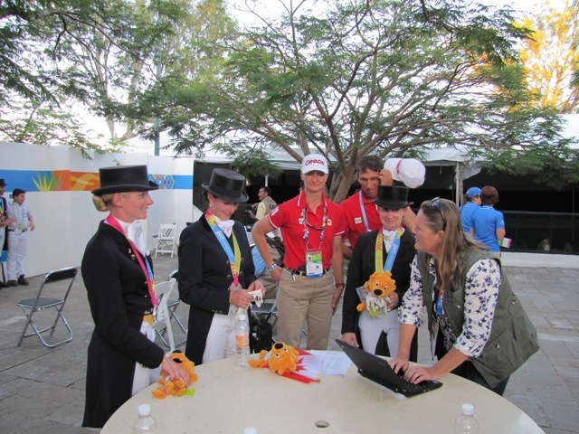 What made the day even more special is that we had a very strong COC presence at our venue that day. Canada’s chef de mission Jacques Cardyn, Asst. chef Curt Harnett and COC vice president Tricia Smith all came out to spend the afternoon watching our dressage riders and were able to witness our team collect their very well deserved silver medals. It’s no secret that we are the ‘expensive’ child in the COC family, with a whole slew of extra logistical requirements that don’t exist for other sports (quarantine, horse flights, feed, vet supplies, owners etc. etc), so it’s always nice for the COC to see the fruits of all the efforts that go into getting our teams to and from major games.
