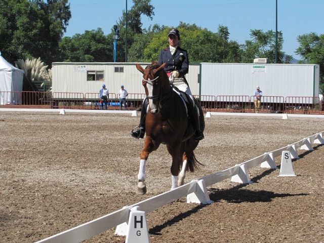 We managed to make our way to the designated seating area just in time to see Tina Irwin and Winston put in a very elegant and fluid test, marred only by 1 uncharacteristic spook (some people said they saw a branch fall from a tree directly adjacent to the ring). But Tina & Winston immediately regained their exposure, and the rest of their ride was smooth.