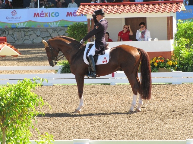 I can’t tell you how great it was to be sitting in the stands, and talking with Norbert van Laak (former Canadian Team Coach and attending the Pan Ams as coach of one of the Brazilian riders), who rode every stride with our Canadian riders and rooting for them all the way; Albrecht Heidemann (former Canadian Junior/YR Team Coach, and current Costa Rica Team Coach) and Heidi Mello (Team Leader for Bermuda and the Cayman Islands)….all of them cheering on the Maple Leaf.