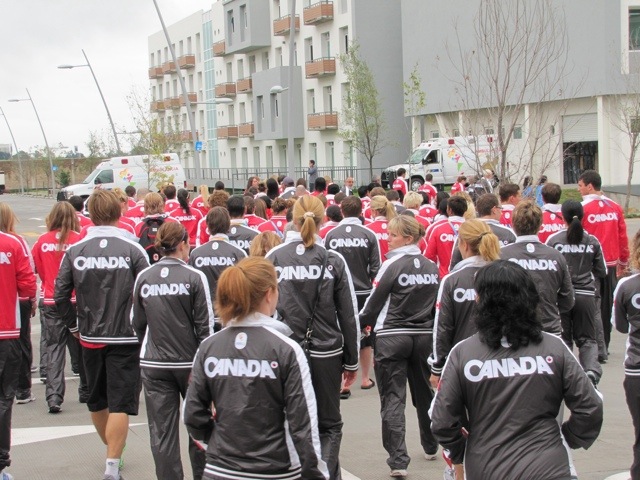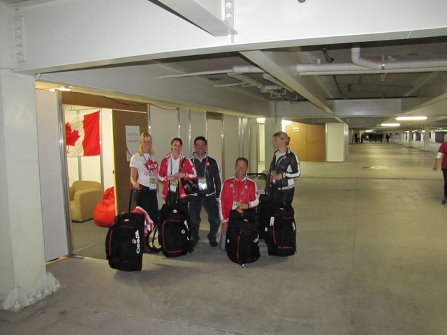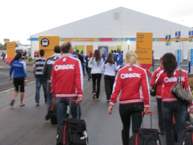 We then gathered at the Canada building, where chef de mission Jacques Cardyn and asst. chef Curt Harnett (husband of 2010 WEG dressage team rider Vicki Winter) gave a rundown of what was to come and got the troops pumped up.