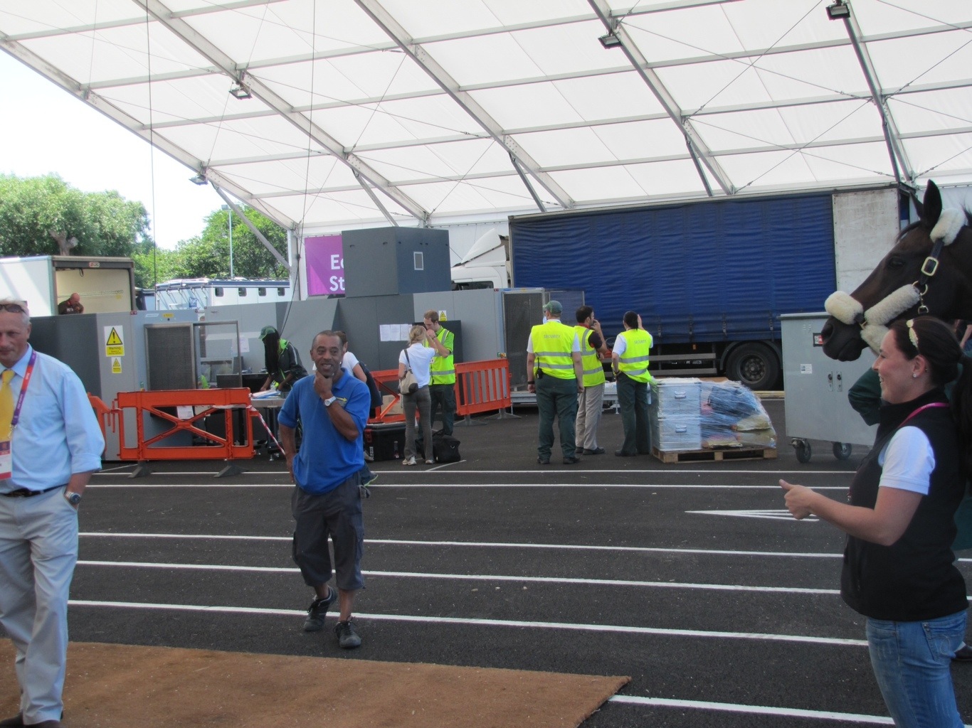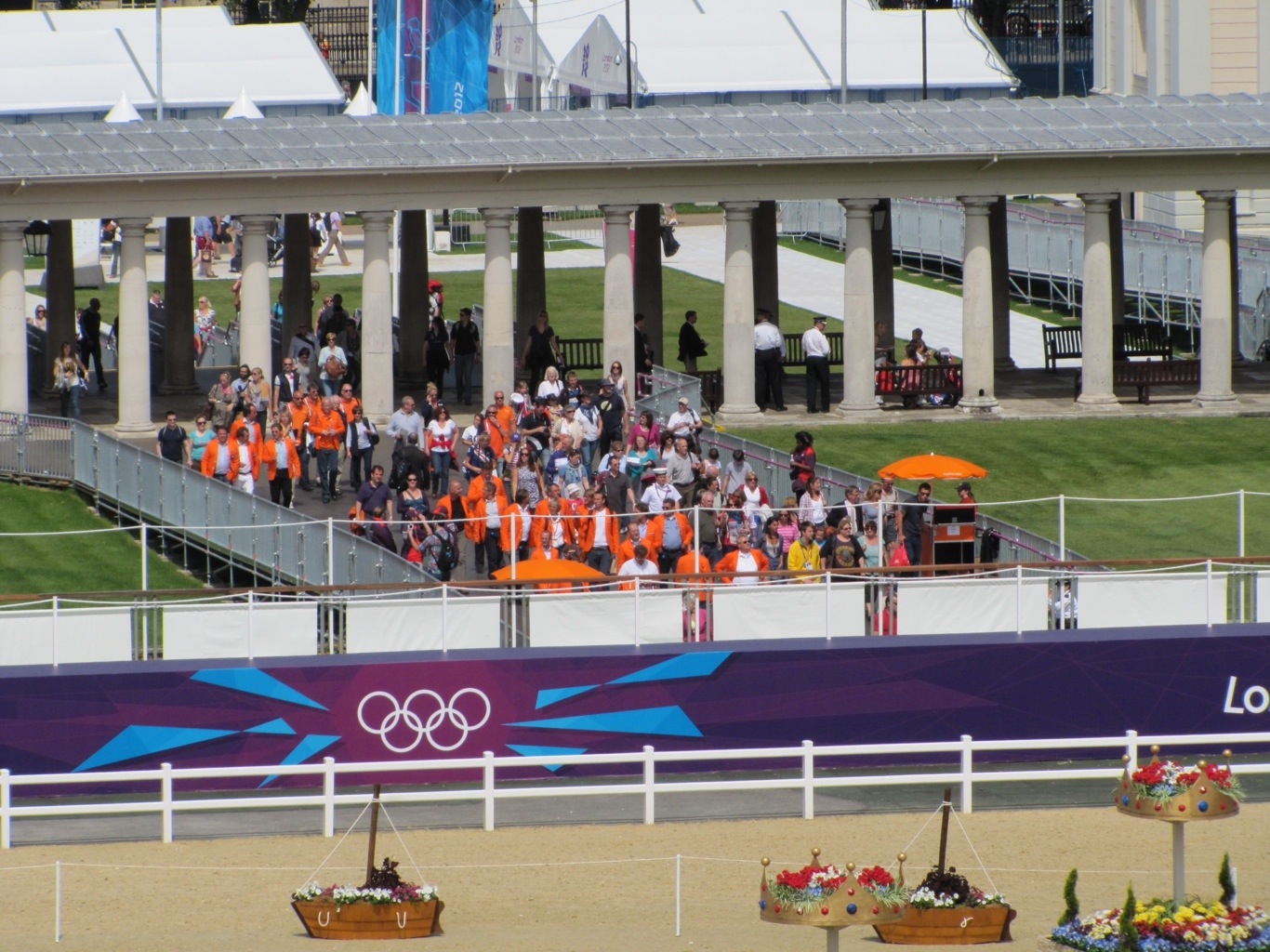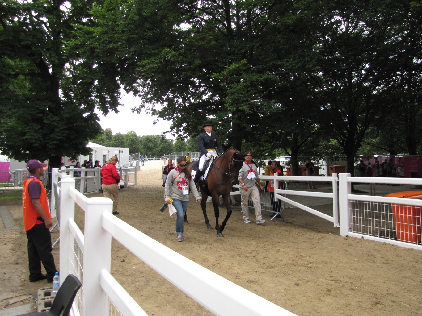 I made a quick trip to the stables to make sure that everything was kopasetic with Eventing and Dressage, then next stop was to the Sports Information Desk to make sure I handed in the Training Venue Pass forms for the next day. The latter is part of my daily routine as LOCOG won’t allow you to indicate multiple days on the form. So each and every day I diligently go to the Sports Information Desk to hand in my 3 forms (we are allowed a max of 3 per day). But gold star for me for being so organized – I have photocopies for each support team member that is using a venue pass, each in a separate plastic folder per person, and pen in the date.