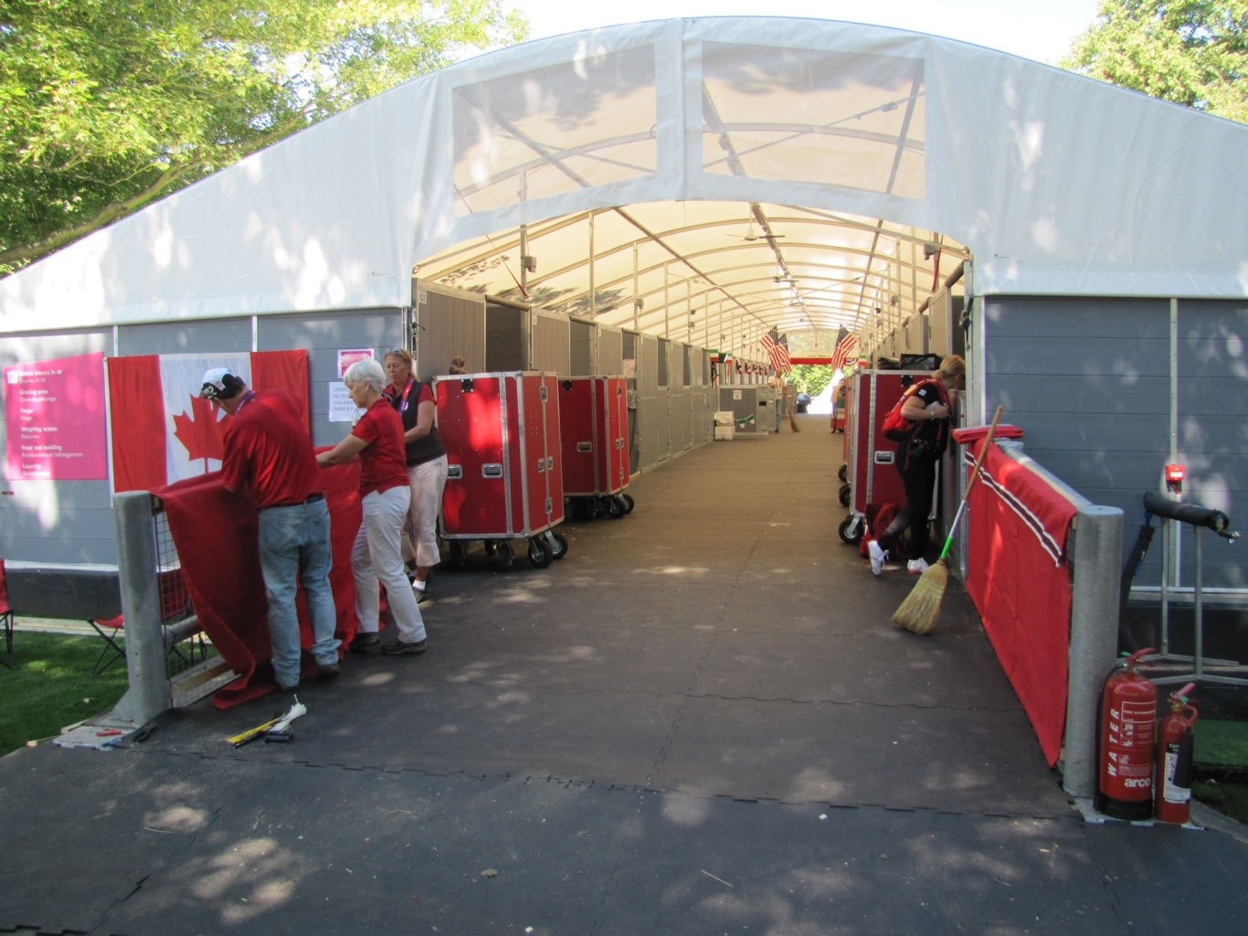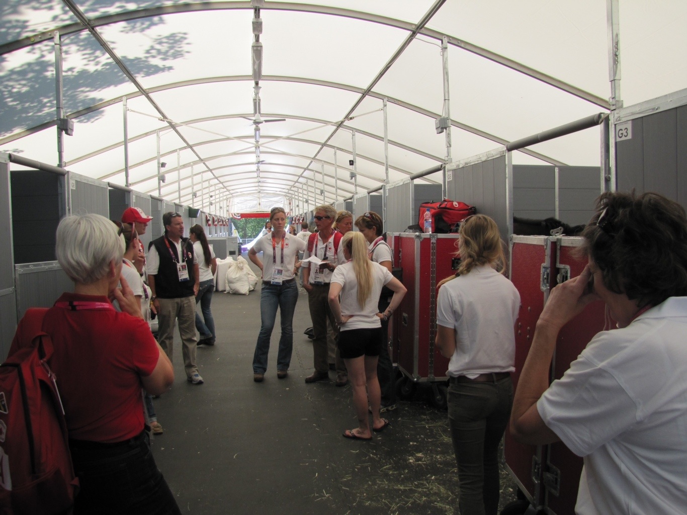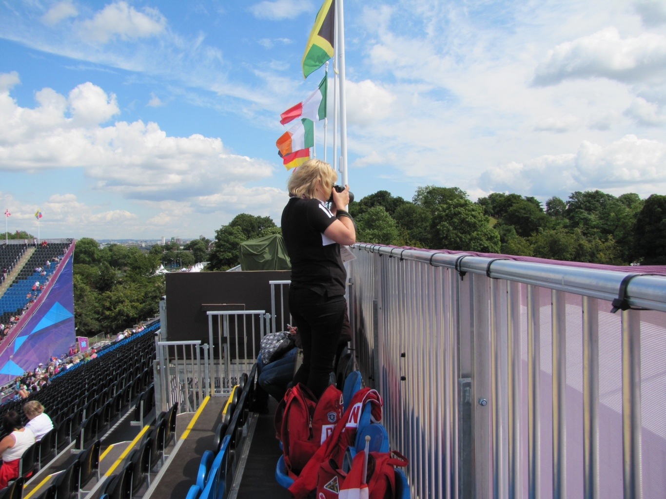 I made a quick trip to the stables to make sure that everything was kopasetic with Eventing and Dressage, then next stop was to the Sports Information Desk to make sure I handed in the Training Venue Pass forms for the next day. The latter is part of my daily routine as LOCOG won’t allow you to indicate multiple days on the form. So each and every day I diligently go to the Sports Information Desk to hand in my 3 forms (we are allowed a max of 3 per day). But gold star for me for being so organized – I have photocopies for each support team member that is using a venue pass, each in a separate plastic folder per person, and pen in the date.